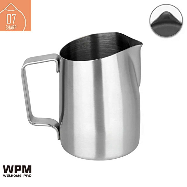 IMOMはWPMミルクピッチャーの正規販売代理店です。 【形状】07 SHARP 【サイズ】450mL ( 15oz ) 【材質】ステンレス 【本体重量】約185g 人気のWPM社のミルクピッチャー。内側に180cc目盛りつき。大きめの取っ手が持ちやすく、またミルクの流量をコントロールしやすくするために上端が斜めにカットされています。ミルクをはじめ色々な飲料を温める際に使用できます。プロのようなラテアートをしたい方におすすめです。 【注ぎ口の比較情報】 ・「06 ROUND / HC7106シリーズ」に比べて「07 SHARP / HC7107シリーズ」は注ぎ口が細くなってます。 ※輸入品につき箱に若干の傷・潰れ等がある場合がございます。ご了承下さい。 ※モニターの発色により実物と異なる場合がございます。