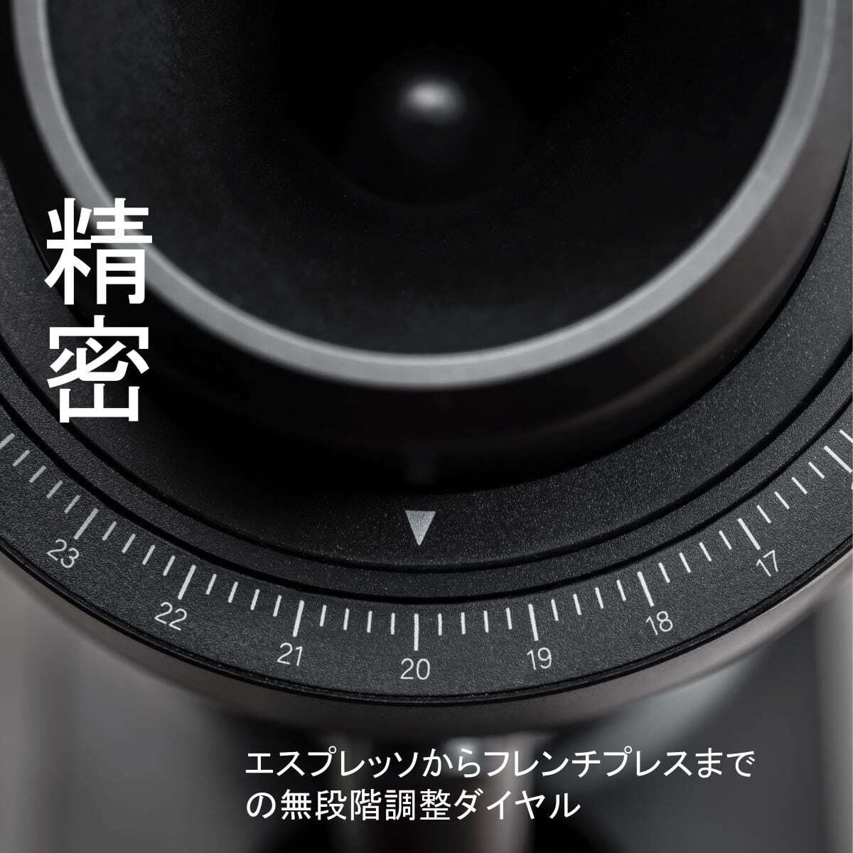 分解に工具を必要としない簡単清掃、無段階での正確な挽き目調整などの革新的な機能を備え、その洗練されたデザインと機能は全てのコーヒー愛好家により豊かなコーヒーライフを提供します。
