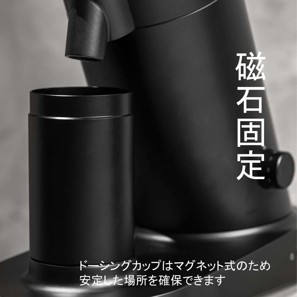 マグネットにより位置を固定されたドーシングカップは粉の飛び散りを最小限に抑えます。また シュートノッカーは粉残りを効果的に取り除き、常に正確なドーシングを可能にします。
