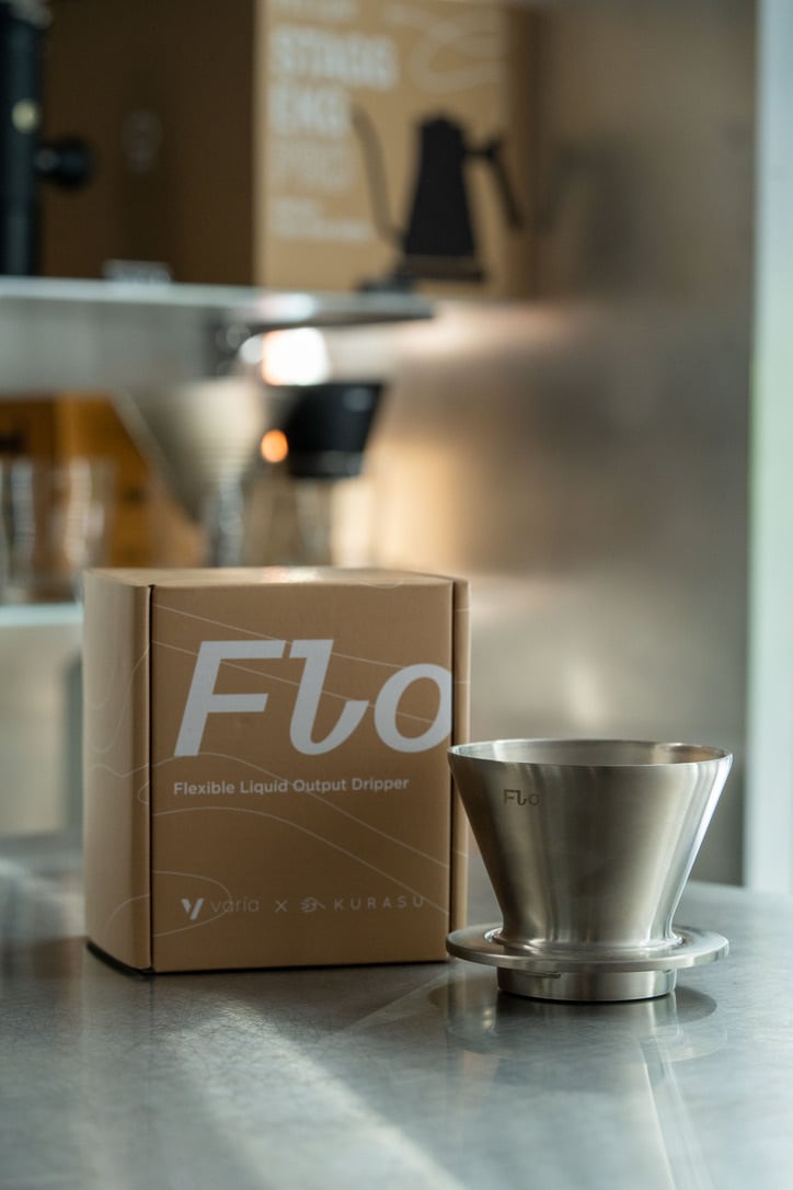 FLOは抽出における流量変化を研究して辿り着いた商品。製品作りに強みを持つVariaが特許を取得し、Kurasuがフローレートや素材などについて改良を加えたFLOは、付属のスクリーンを駆使することで流量などを自在にコントロールします。